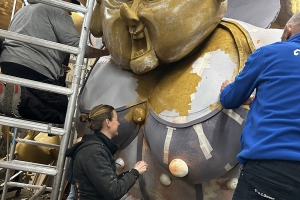 D'r wor ard gewerrekt aan 't nuuwe gerijke van BC de Vlaojestáámpers. 't Ontwerrep van de wage n'is van de 22-jarege Wies Hoogers